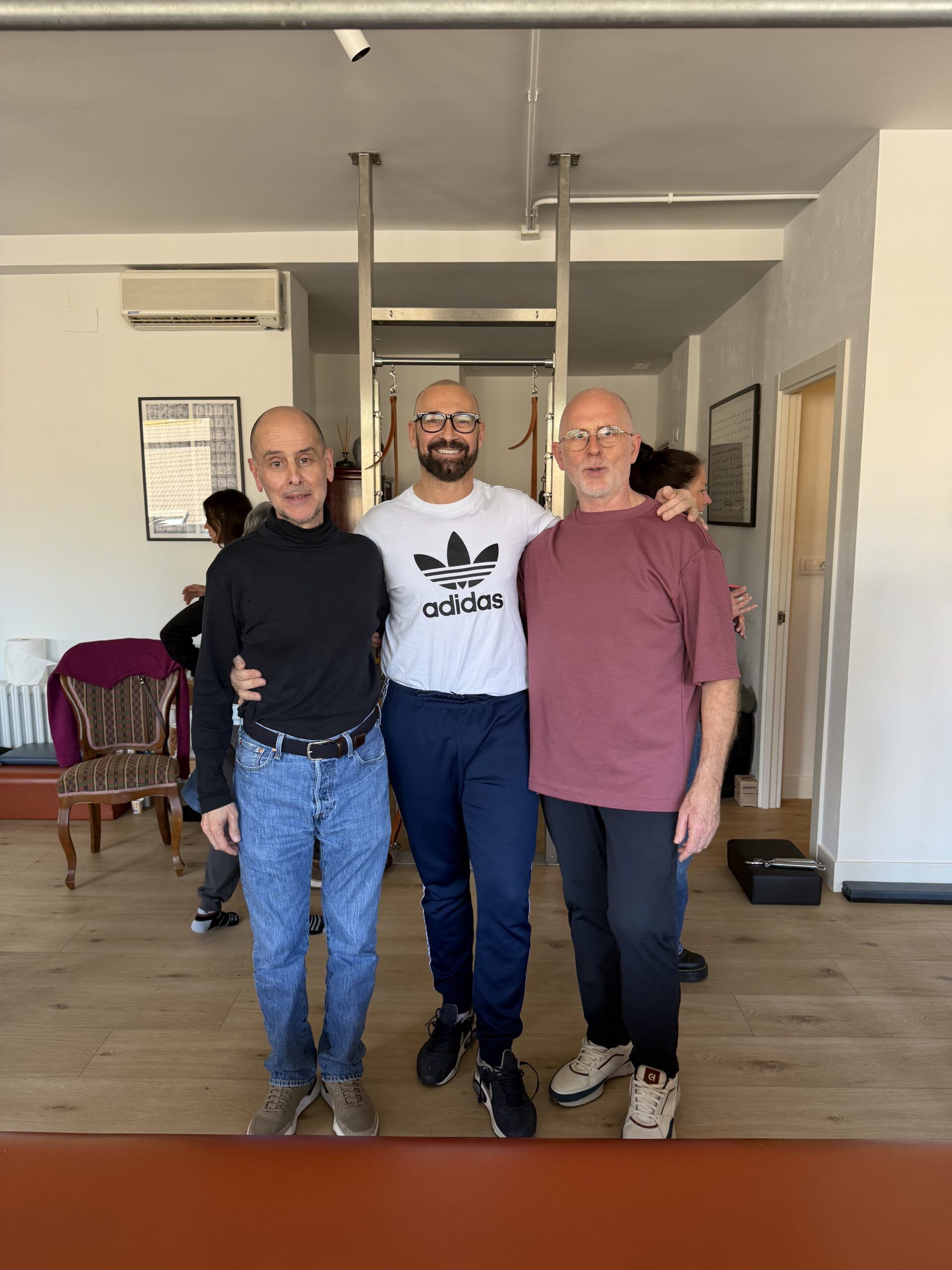 Allí no solo se formó: se empapó. Inició su formación de certificación al mismo tiempo que Javier Velázquez, con quien forjó una gran amistad, y aprendió de profesores como Edwina Seaver Fontaine, Sari Mejía Santo, Kathy Stanford Grant, Cynthia Shipley entre otros. Lo que iba a ser un año se convirtió en mucho más: nueve años trabajando junto a Romana y Sari, Kathy Edwina Seaver Fontaine, Jerome Weingberg, entre otros, observando, adaptando y entendiendo el pilates desde su esencia.